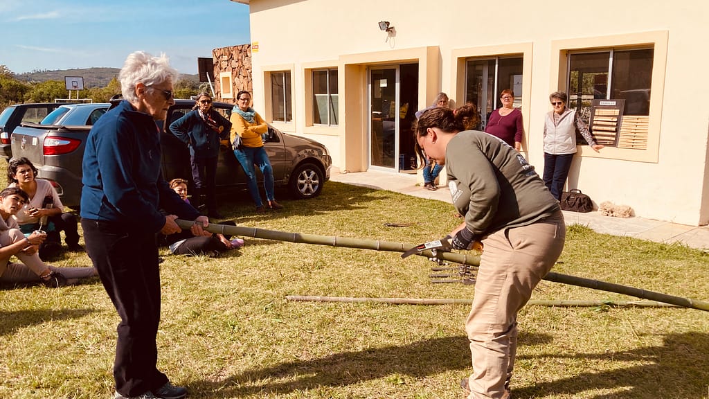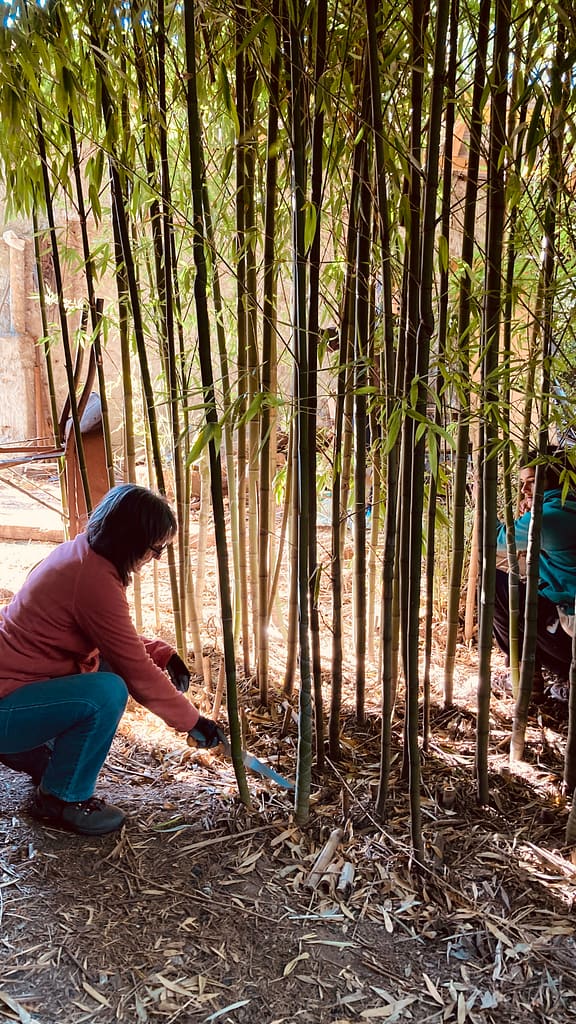 Iniciamos con un bloque de presentación, aterrizaje e inmersión en contenido teórico. Luego fuimos a un bambusal a reconocer una de las especies más abundantes en nuestro país, la Phylostachys Aurea, para observar sus características y saber cómo mantenerla, como es la cosecha y otros piques.